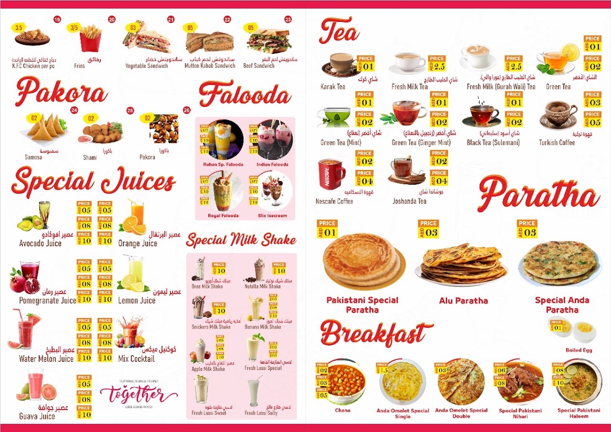 Reviews from satisfied patrons echo the quality and flavor of the food served here. Syed Irfan Mehmood calls it "a hidden gem" for Pakistani street food, while others, like Adnan Khan and Uzzal Sheikh, highly recommend their standout offerings, including the irresistible samosas, pakoras, and of course, the delicious alu and fresh parathas. Each dish at Bayt Al Rehan feels like a warm embrace, reminiscent of meals enjoyed back home.